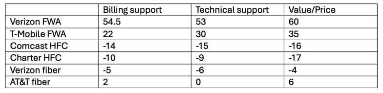 DANIEL FRANKEL: Happy pre-holiday, David. I’ll just jump right in with the culmination of our year-long trial of T-Mobile’s $50-a-month fixed wireless access 5G home internet. My conclusion: The shitty performance and terrible customer service don’t justify the substantial savings versus cable. One of my college-student sons is changing apartments in Santa Barbara in the fall, and I was trying transfer his FWA service to his now former roommate, who is staying in the old place and still wants to use the service … even though Reece did nothing but bitch about the network performance. We left the modem 90 miles up the coast when we moved Reece out last week. But it wasn’t until I talked to literally my seventh T-Mobile customer service rep — finally, one with at least a vague familiarity with the home internet product — did I find out I need the modem with me to make the transfer. With the boys vacated to various far-flung college baseball points of call this summer, I now have to drop everything and drive back up to SB to pick up the modem, all because T-Mobile can’t get its shit together. Truthfully, even as a wireless customer a few years ago, I always found my interactions with T-Mobile’s reps (also far-flung) maddening. Yet, their Net Promotor Score kills cable. In fact, all of FWA kills cable on NPS. My experience with Charter for wireless and home internet has been so much better. I honestly don’t get it.